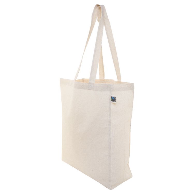Reusable, Fairtrade cotton shopping bag with gusset and long handles. 100% Fairtrade cotton, 180 g/m². With distinctive Fairtrade label, in neutral color