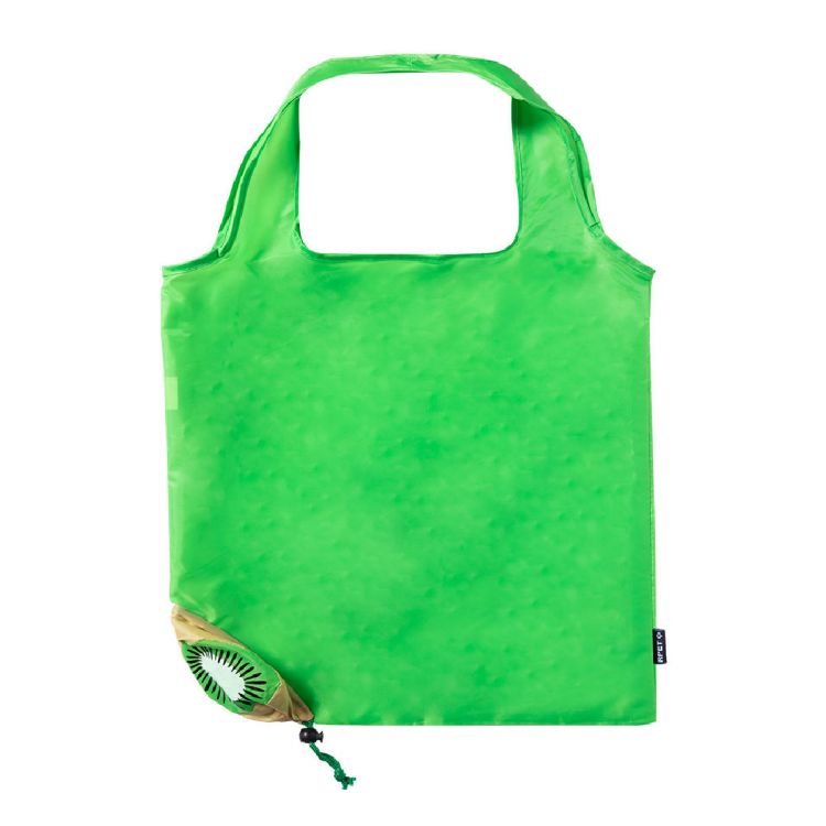 Foldable bag in RPET 190T with fruit designs. Includes an adjustment accessory for easy folding and RPET label. With a resistance of up to 7 kg. RPET material is made from recycled plastic to promote the reuse of plastic waste and help the planet's sustainability.)