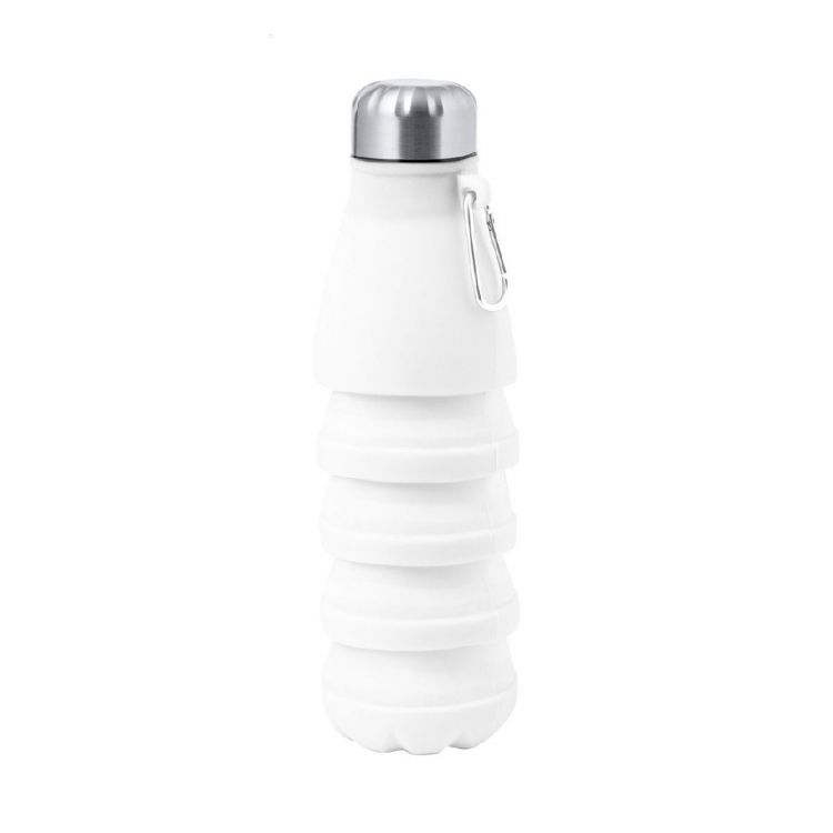 Silicone foldable sport bottle with stainless steel lid and carabiner. 550 ml, in white color