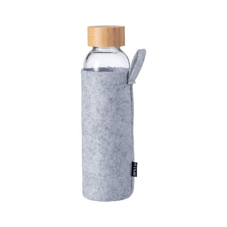 Glass bottle with bamboo cap and RPET felt pouch, 500 ml. Not suitable for carbonated drinks, in dark grey color