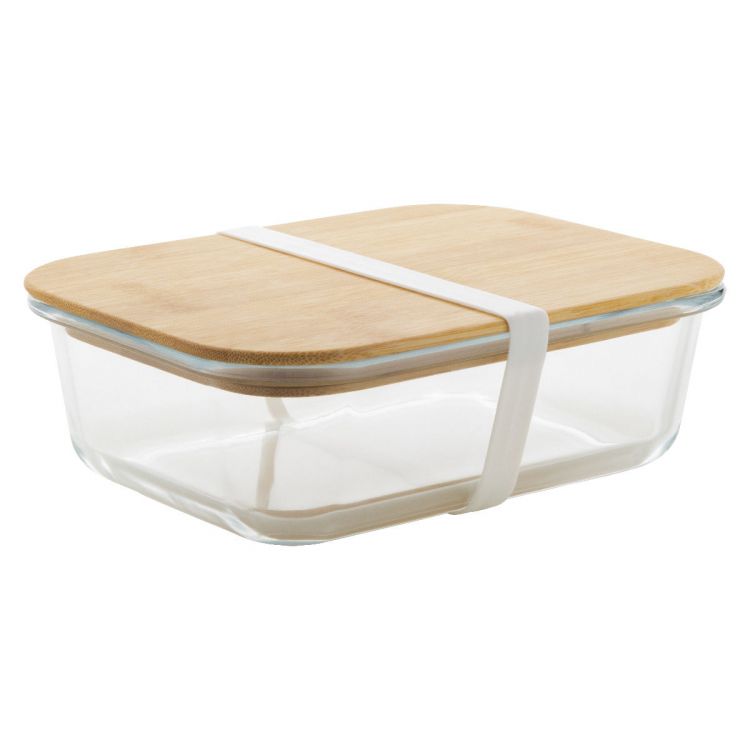 Glass lunch box with natural bamboo lid and silicone strap, 800 ml