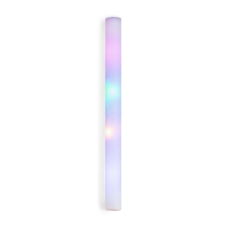 Original light bar, illuminated by bright LEDs. Made of soft foam and smooth to the touch, the interior is illuminated by four LED lights in a variety of colours. Powered by button batteries -included-, it is easy to switch on by means of a button at the base with three different positions (fixed light, fast or slow flashing light). This accessory is ideal to stand out at any event. Individually presented in a kraft design box. (white color)