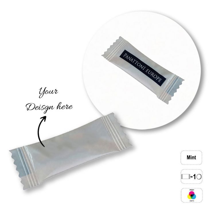 Pack containing 1 SUGAR-FREE mint chewing gum. Packaging: fully customizable food sachet with a choice of: 100% compostable white or transparent sachet (choice of finish when ordering). Minimum shelf life - 12 months.