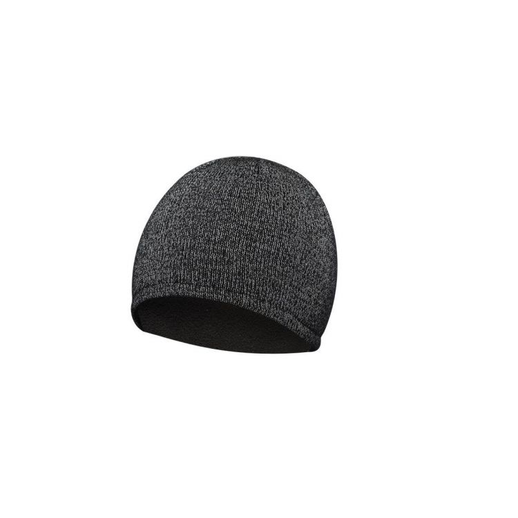 Comfy sports hat in extra reflective material. Outside in acrylic material with reflective fibers and inside in soft and warm polar fleece. (black color)