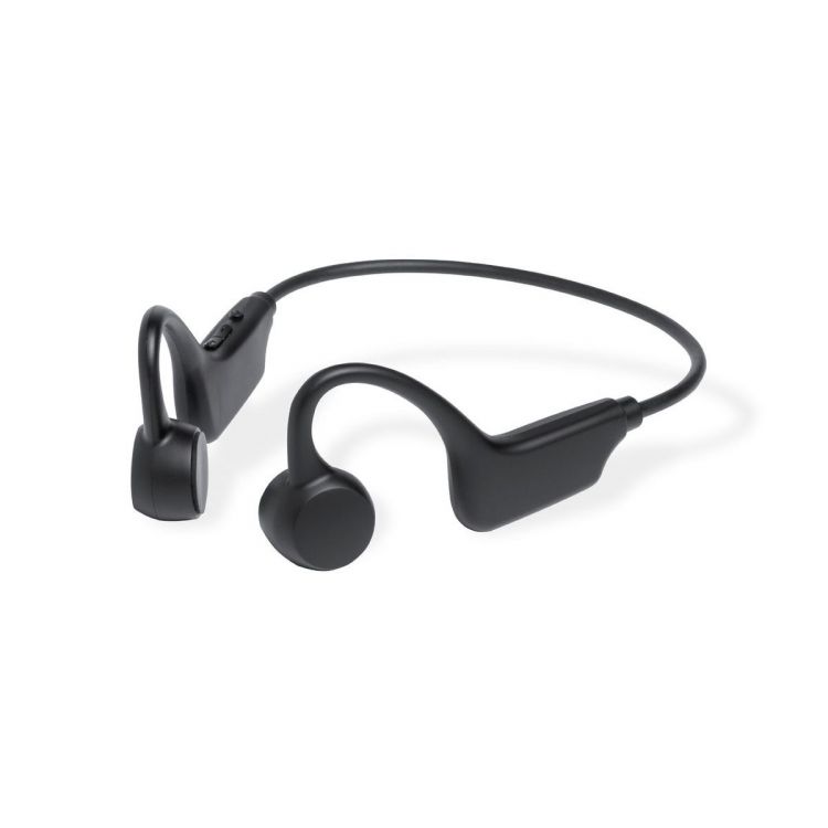 Bluetooth® supraural earphones. With Bone Conduction Technology, generating a vibration detected by the bones of the internal ear. With this technology, the user's ear and eardrums are released, perceiving both the content being played through the headphones and the rest of the ambient sounds.Bluetooth® 5.3 connection, with hands-free function, micro SD card slot and integrated 250 mAh battery. Ergonomically designed, with integrated control buttons, LED charging status light and Type-C charging cable. Presented in an individual kraft design box, with instruction manual in English and Spanish. (black color)
