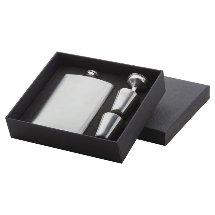 Stainless steel hip flask with 2 shot glasses and a funnel, 230 ml. In black gift box