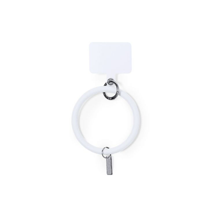 Genuine mobile phone holder bracelet in flexible silicone, adaptable to all types of wrists. With carrying accessory to place between the case and the smartphone. With special metal accessory for laser engraving and large printing area in PP. Available in a wide range of colours.