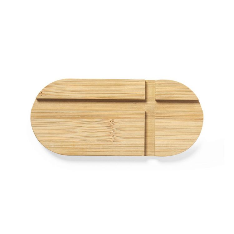 Unique and simple nature line holder for smartphone and tablet. Made of bamboo from natural cuttings. Presented in an attractive individual box with an eco-friendly design. (neutral color)