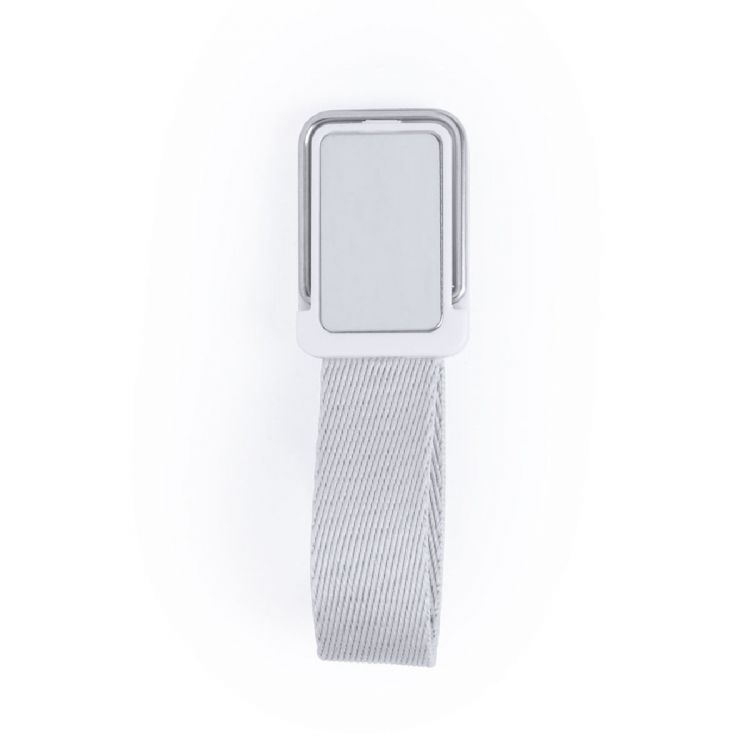 Bold adhesive smartphone holder with strap for your selfies in resistant polyester and a wide printing area. Including metallic holder and presented in an individual design bag. (grey color)