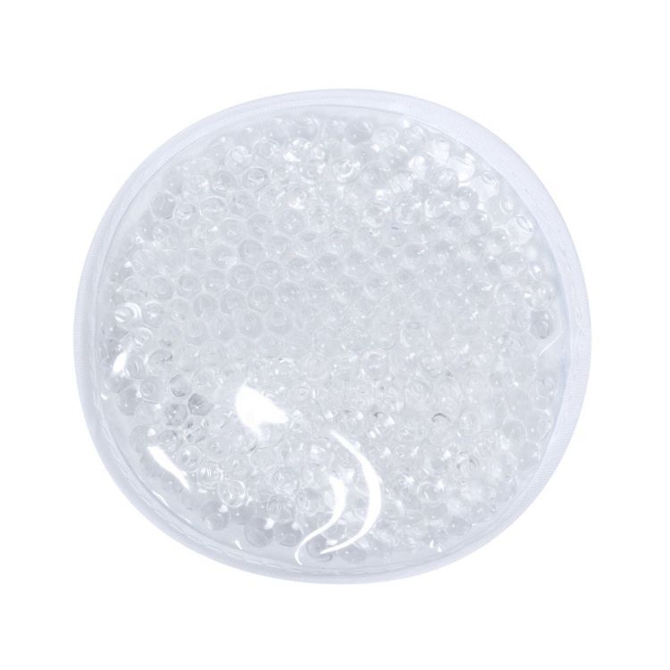 Reusable thermal patch with cold or heat effect. The cold effect is achieved by placing it in the refrigerator for 2-3 hours, while the heat effect requires a microwave oven. Reusable thanks to the gel beads inside,and with an adjustable round hand strap to fit in the palm of the hand. Presented individually in a recycled paper bag. (white color)