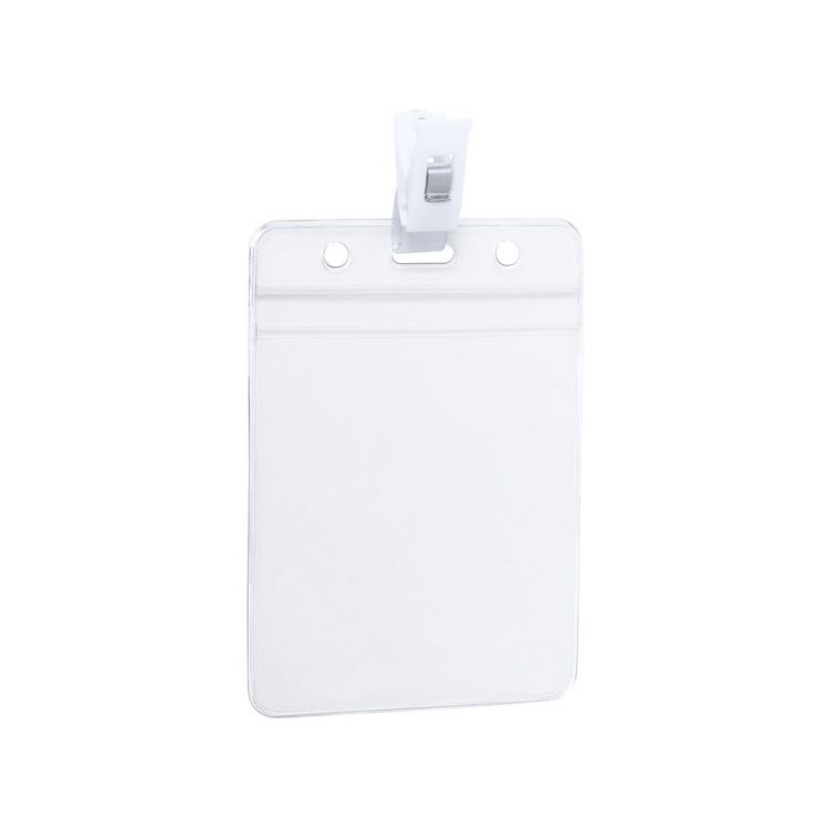 Name tag embossed in PVC with fixing clip in white. Available in horizontal and vertical design.)