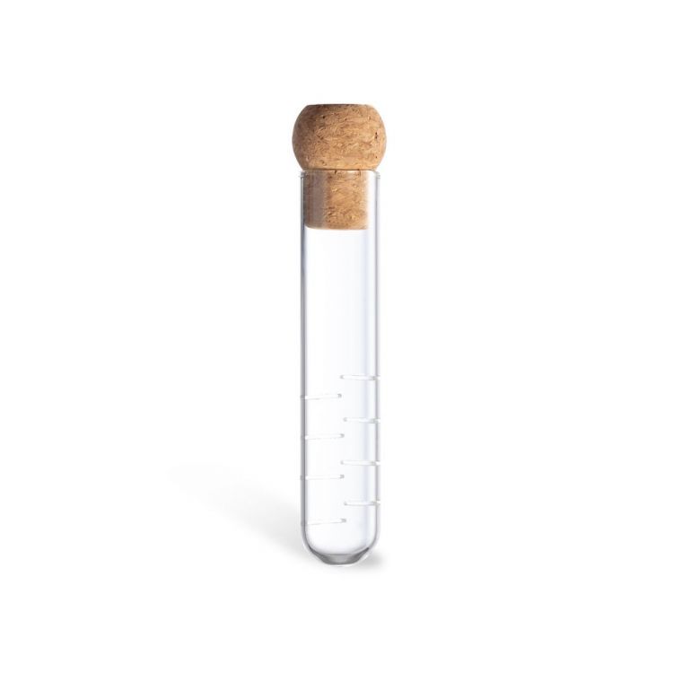 Infuser made of glass, with natural cork lid. Presented in an individual box with kraft design. (neutral color)