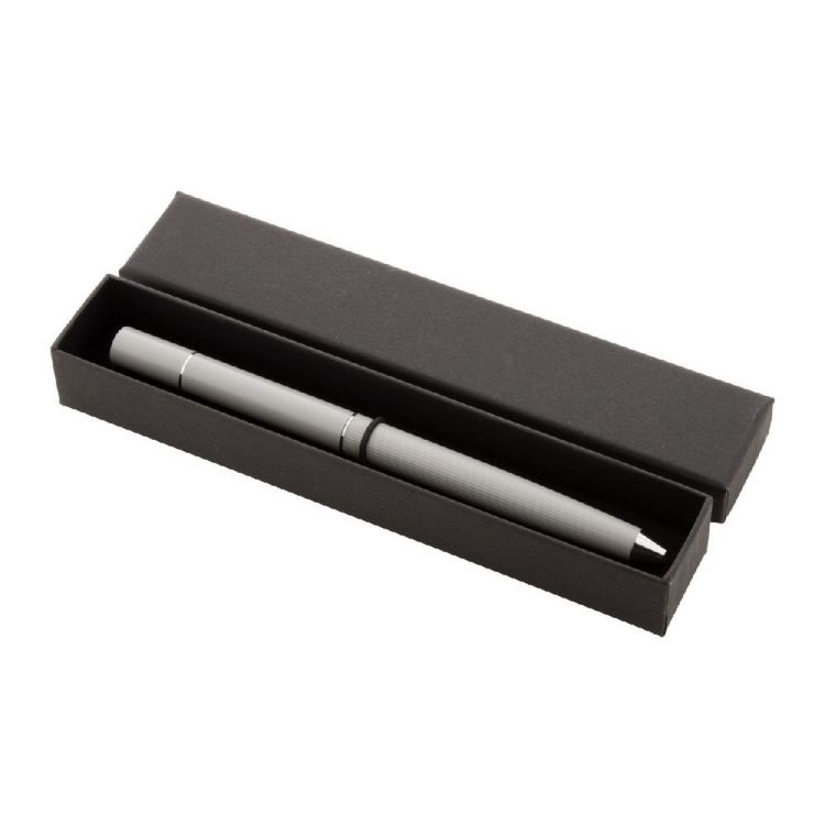 Metal 2in1 twist ballpoint pen and inkless pen in black gift box. With blue refill and metal alloy tip, which oxidizes the paper.