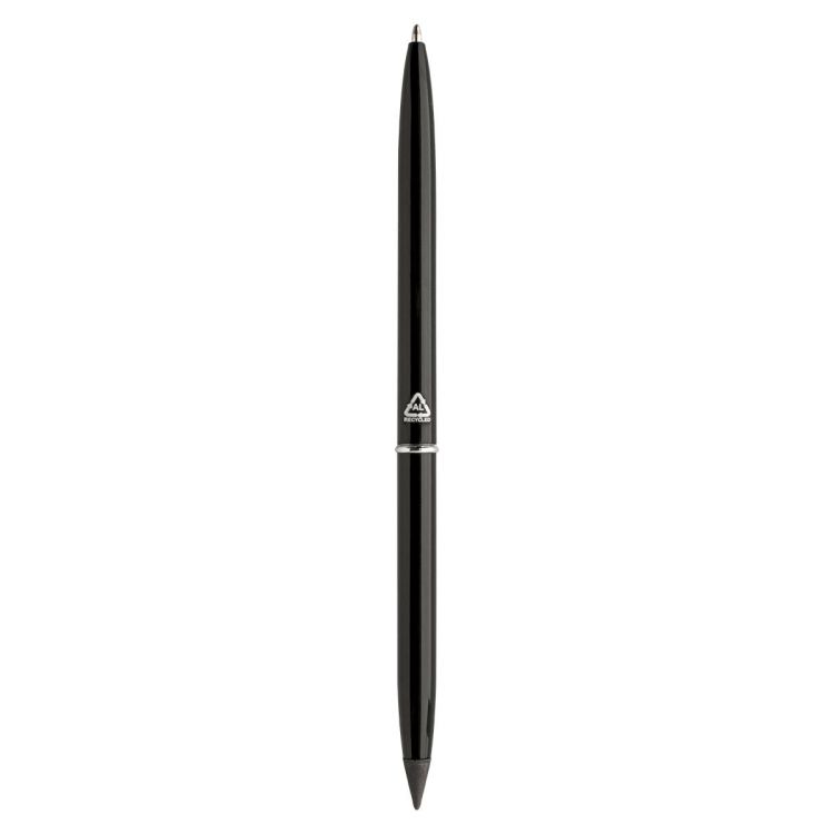 Recycled aluminium 2in1 twist ballpoint pen and inkless pen. With blue refill and metal alloy tip, which oxidizes the paper. This pen writes similarly to a pencil, and it is also erasable.