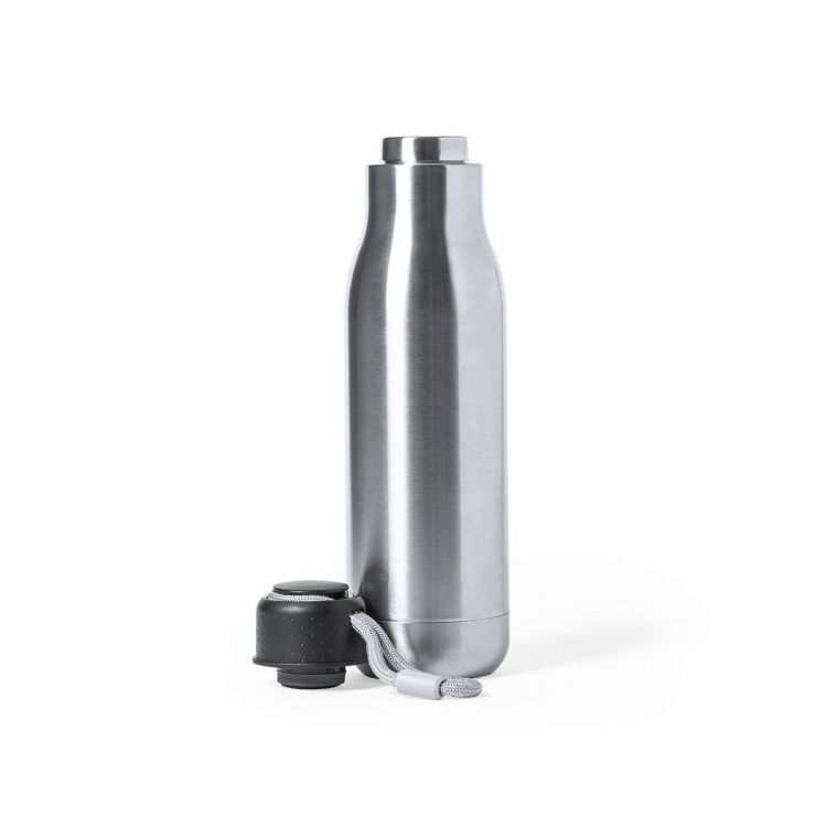 Stainless steel, double walled thermal bottle with 830ml capacity and glossy finish. BPA-free safety lid and presented in an attractive design box. (silver color)