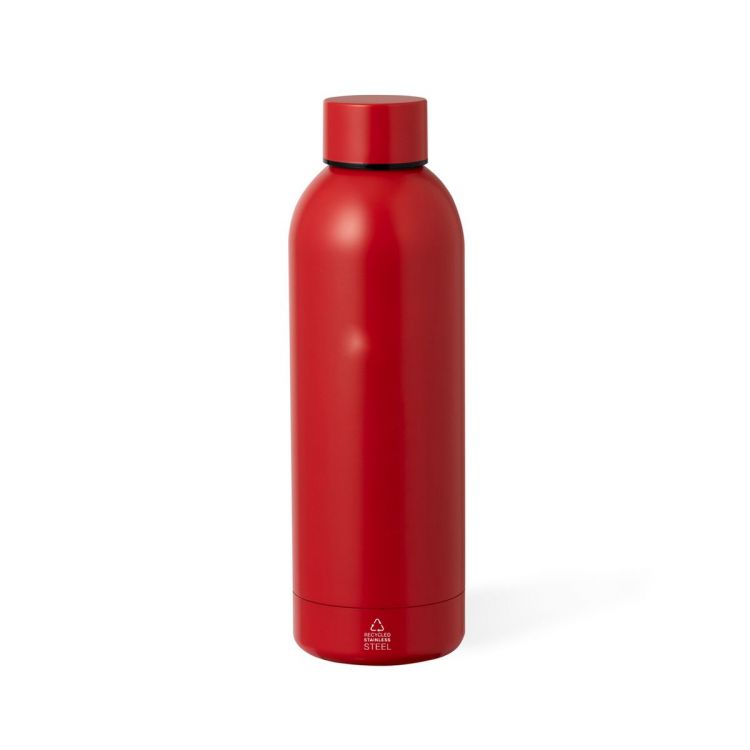 Recycled Stainless Steel thermal bottle with double layer. 550 ml capacity, and available in a wide range of metallic colours with matt finish. With Recycled Stainless Steel logo and presented in an attractive kraft design box.Steel is one of the most demanded materials and can be found almost everywhere, from everyday products to major constructions. With countless properties, including durability and a high level of reusability, it is a much valued alternative for sustainable solutions. Properly treated, new resources of infinite use can be obtained.
