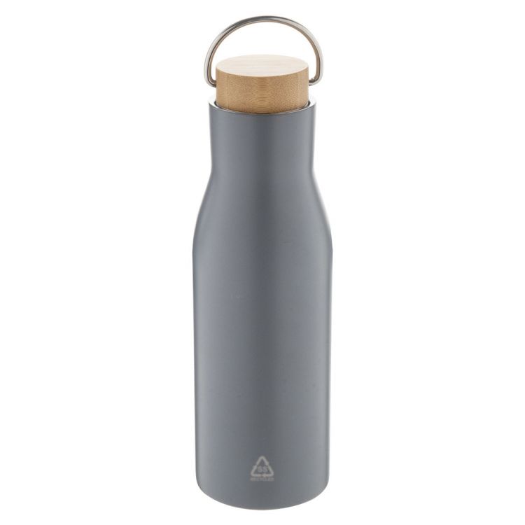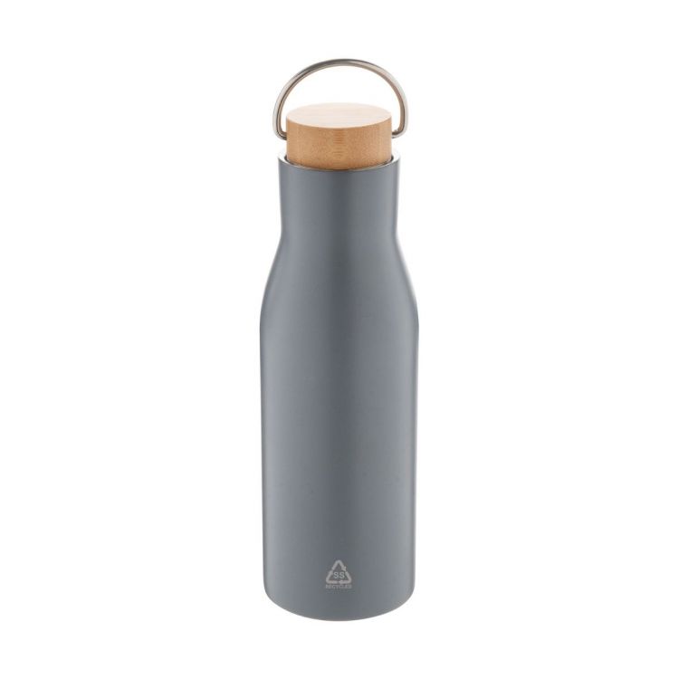 Double-wall, recycled stainless steel vacuum insulated bottle with bamboo carry lid, 500 ml.