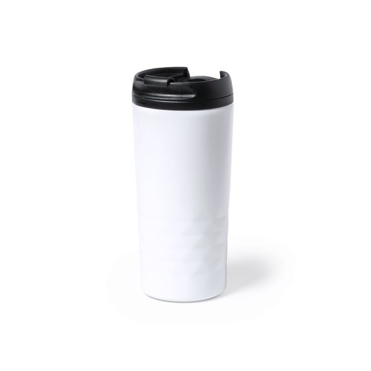 Stainless steel table-top cup with a capacity of 310ml. With easy-open dispenser lid and soft foam padded base. It is ideal for your desk, table, or any surface where you can enjoy your favorite drink. With original glossy finish and diamond design.