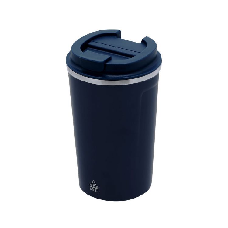 Thermal mug with double wall made from Recycled Stainless Steel and 400 ml capacity. Lid with easy open dispenser made of PP and BPA-free. Includes a Recycled Stainless Steel label.Steel is one of the most demanded materials and can be found almost everywhere, from daily use products to large constructions. With countless properties, among which durability and high recyclability stand out, making it a highly valued alternative in sustainability solutions. Properly treated, it allows obtaining new resources for infinite use.