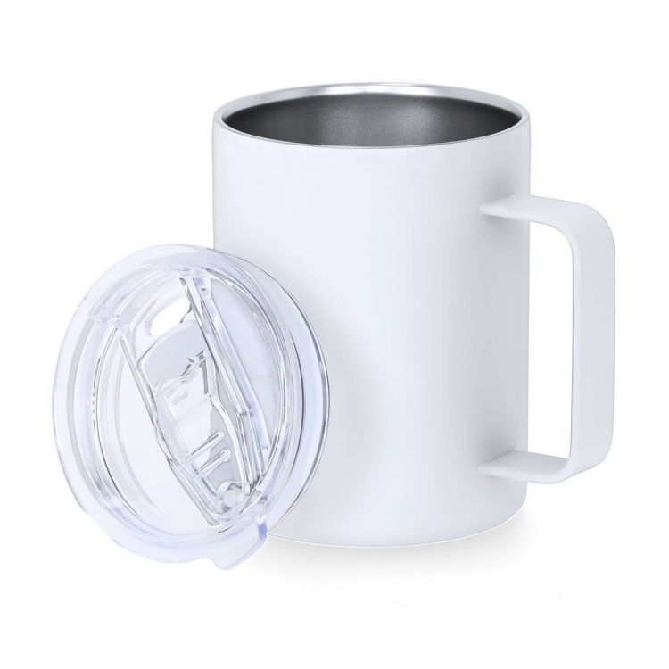 Insulated Mug made of double-walled stainless steel with a capacity of 400 ml. Exterior in rubber finish, specially designed for laser branding. Including a transparent snap-on lid, with dispenser and easy-open, BPA free.