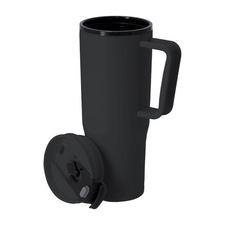 Insulated Mug made of durable double-walled Recycled PP. Has an 800ml capacity. Lid with easy-open dispenser, including a straw hole. BPA-free. It includes an ergonomic handle . With recycled PP logo. Recycled PP is a recycled and highly recyclable plastic, highly resistant and suitable for a multitude of applications.Food Grade certified, guaranteeing safety when food comes into contact with the material used to manufacture the product.