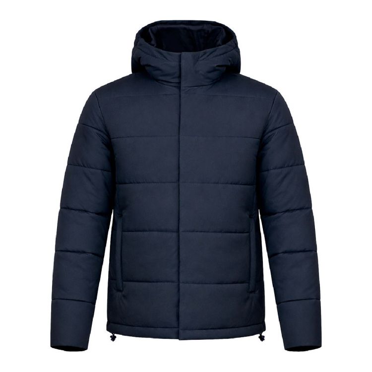 Parka in warm and soft 100% polyester material. In lightweight, wind and water resistant material. Elegant horizontal construction and padded design, with integrated hood. Double front zip and button fastening. Side pockets with matching pull tabs and adjustable hem string. Available in sizes XS, S, M, L, XL, XXL.
