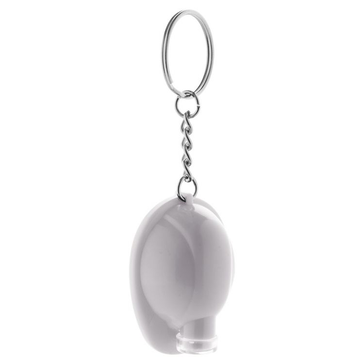 Plastic safety helmet shaped keyring with LED flashlight. With button cell battery.