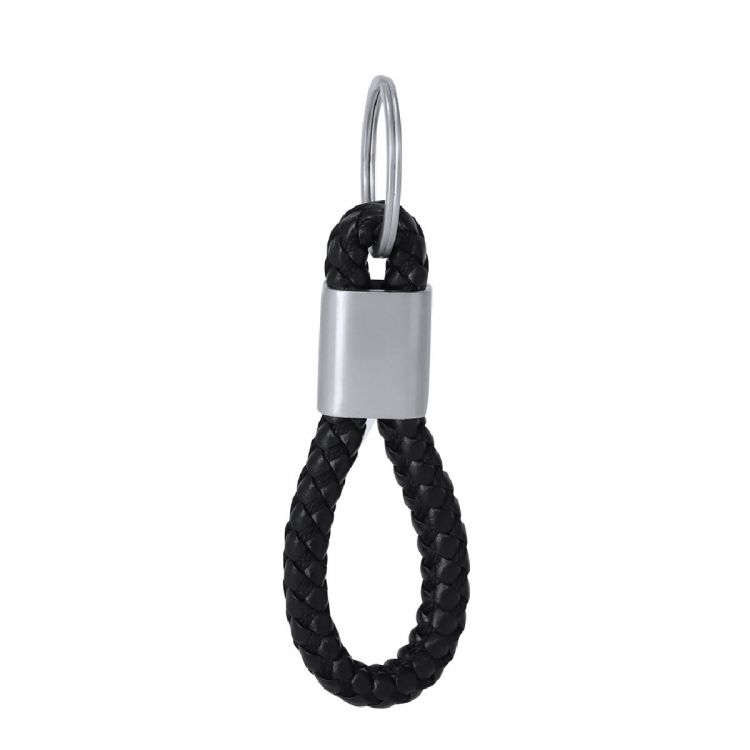 Elegant key ring with braided PU leather cord. Including a matt alloy central piece, specially designed for laser branding. (black color)