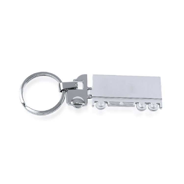Metal keychain in fun truck design, especially designed for laser printing. With cab in glossy finish and trailer in matte finish. (neutral color)