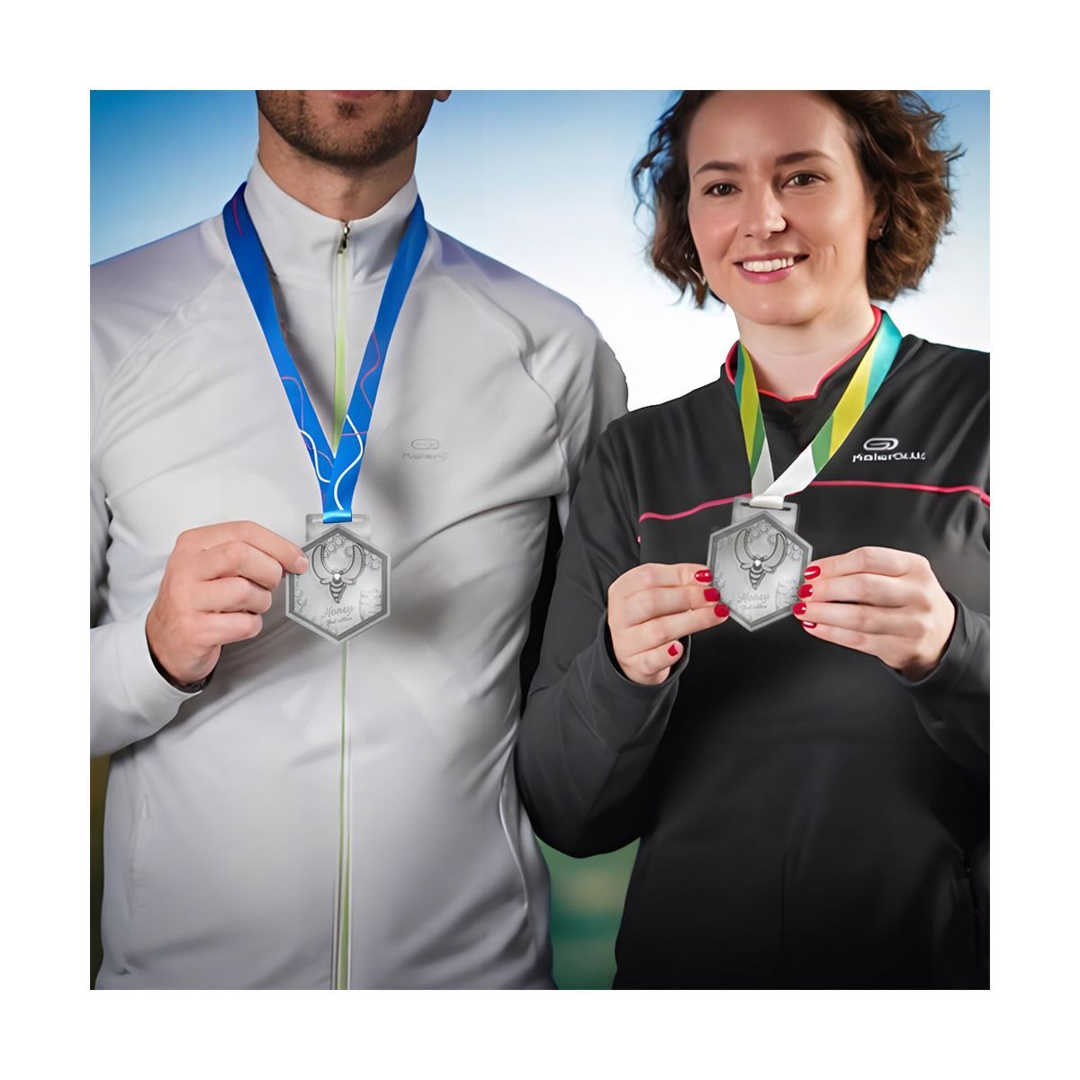 Hexagonal medal with a fully customisable 20x900 mm lanyard included. The medal is manufactured with a 3D effect mould specially created to the customer's design. Thanks to this processing we can obtain a unique, three-dimensional product, cast within the mould. The medals are available in three basic finishes (gold, silver and bronze) at the same price.