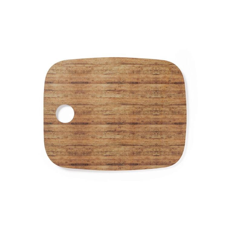 Cutting and serving board made in natural wood, with hole for hanging. Large branding surface and Made In Europe logo. (neutral color)