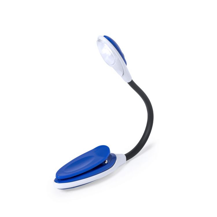 Bicolor design LED reading lamp. With flexible body and comfortable gripper. Presented in an individual box.