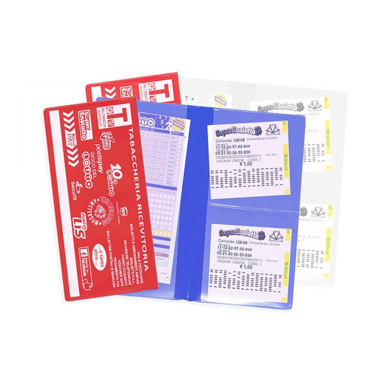 Double sided card holder in leatherette with one full pocket on the left and double pocket on the right, all in transparent PVC.