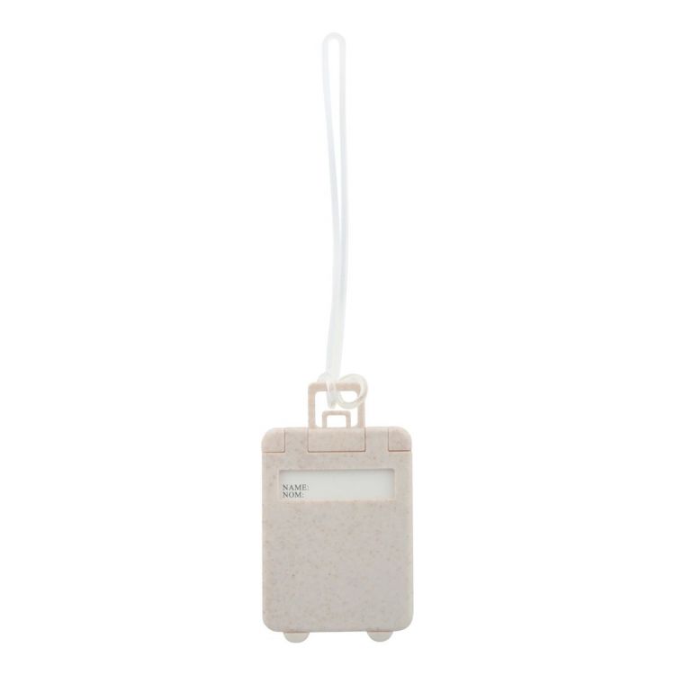Ecological wheat straw plastic luggage tag in trolley bag shape, with elastic strap.