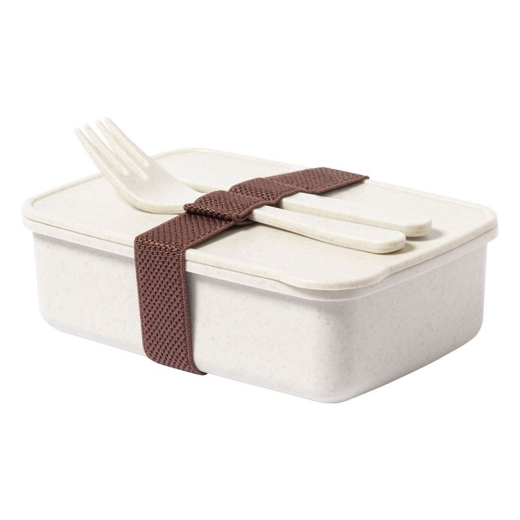Lunch box in PP plastic with cutlery set (knife and fork) and elastic strap. 700 ml, in neutral color