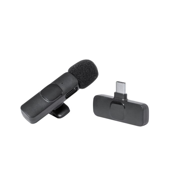 Wireless lavalier microphone for live broadcasts, video calls or podcast recording among many other uses. Including a practical clip for easy adjustment, and connects to the device (smartphone, tablet, computer...) via an OTG receiver with Type C connection, offering a stable, fluid and high quality audio transmission. With high-sensitivity audio receivers and protective foam, capturing the sound with clarity and sharpness. Rechargeable via Type C cable -included- and presented individually in a kraft design box. With instruction manual in English and Spanish. (black color)