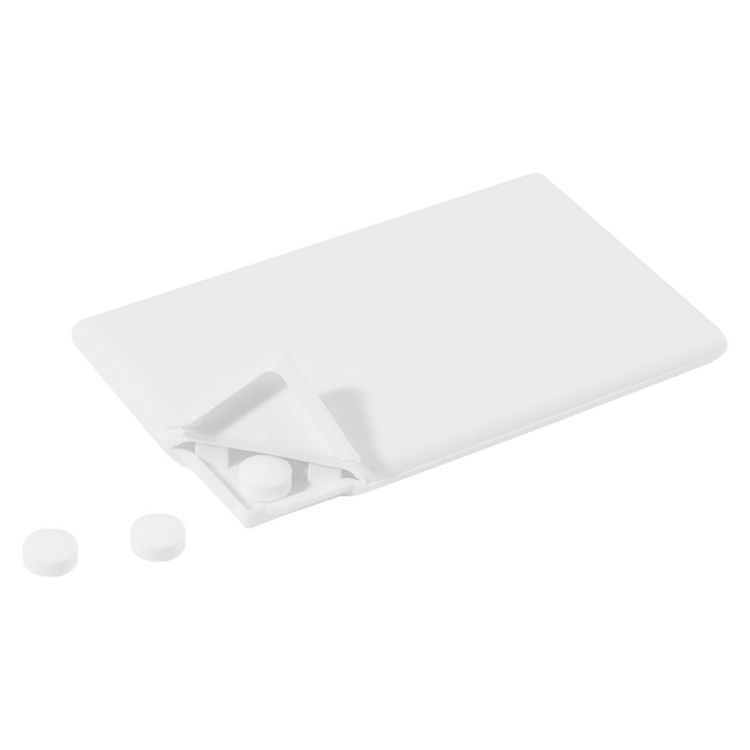Card-shaped plastic mint box with approx. 8 g menthol candies, in white color