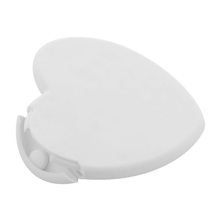 Heart shaped plastic mint dispenser with approx. 8 grams of sugarfree menthol candies.