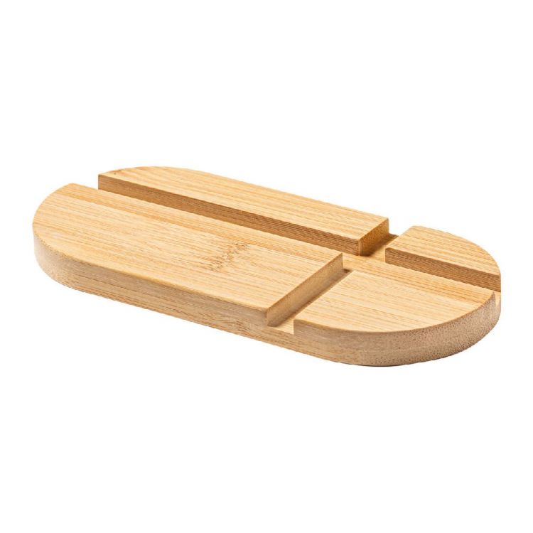 Desk mobile phone and tablet holder in bamboo