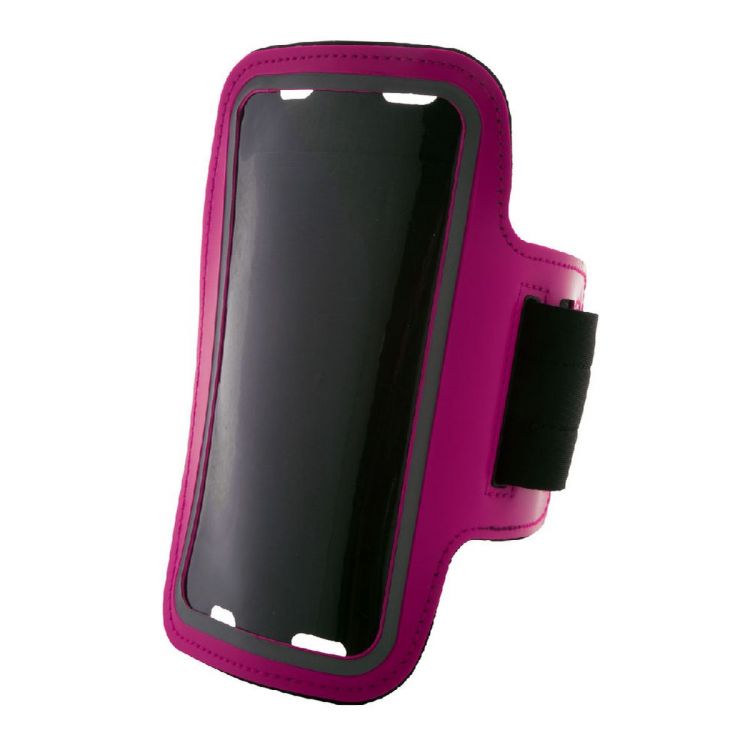 Mobile phone armband case in PU leather with touch screen window and reflective part. Fits mobile phones up to 6 inch screen size.