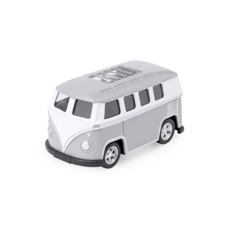 Metal model of a van. A nostalgic souvenir with this detailed and elaborately crafted reproduction of a vintage vehicle. Precision crafted in every detail, from the accessories to the tyres. This model is more than an ornament, it is a distinctive vintage touch to any space. Presented in a kraft design box with window. (grey color)