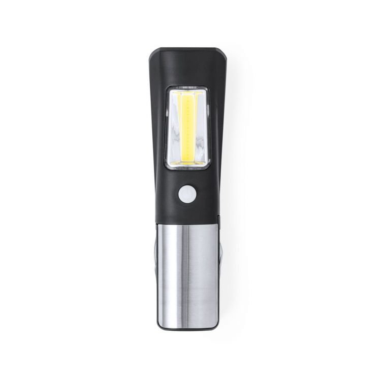 Practical multi-tool made of durable ABS and stainless steel, with integrated 1 LED headlamp. Includes 19 COB side torch with two lighting positions ( steady and flashing ). It has 13 functions, including flat knife, serrated knife, philips screwdriver, scissors, flat screwdrivers, hexagon spanner in various sizes, can opener, bottle opener and a file. With magnet and handle. Powered by 3 AAA batteries, not included. Presented in a kraft design box. (neutral color)