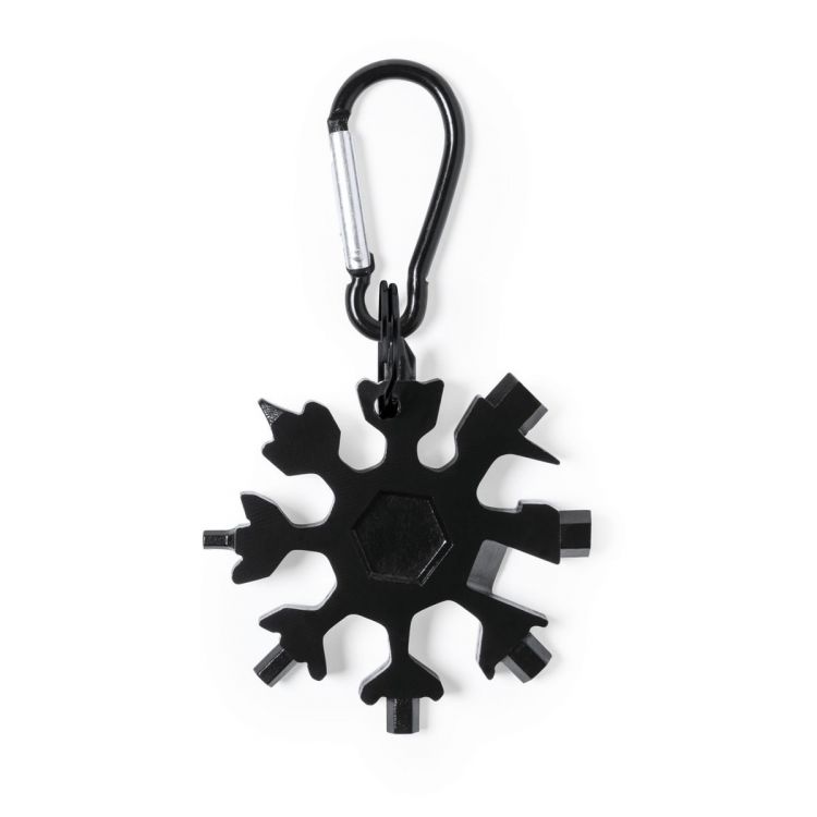Genuine and handy multi-tool made in resistant stainless steel in black finish, with matching ring and carrying carabiner. With 17 functions, including flat and philips tips screwdriver hexagonal allen spanners knife and bottle opener. Presented in an individual black box. (black color)