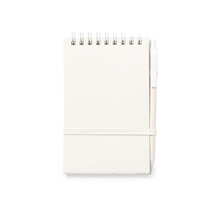 Hard covers notebook made from recycled milk cartons. With 80 sheets of single-stripe layout, matching elastic band and pen holder. Also includes matching ball pen with push-button mechanism and blue ink. With Recycled Milk Carton logo on the corner of each sheet, at the back cover and on the ball pen. Presented in an individual recycled bag.Milk cartons are mostly made of cardboard and Aluminium. During the recycling process, the different packaging materials are separated for reuse and re-purposing, thus contributing to the infinite path of the circular economy. This material is well known for its high recyclability, as well as for its lightweight and resistance. (neutral color)