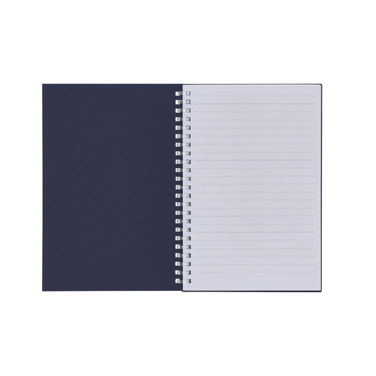 Transparent ring notebook A5 with hard covers in resistant recycled cardboard. Interior with 80 white sheets with a stripe arrangement and 100% recycled. Recycled Cardboard comes from the reuse of surplus manufacturing and recycling paper at the end of its useful life, becoming an ecological and sustainable canvas.