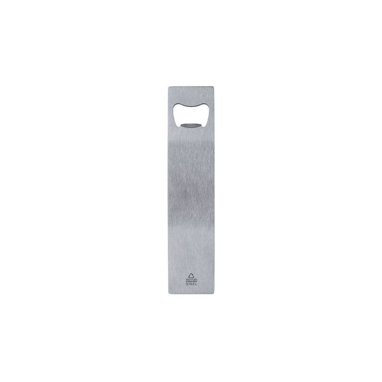 Opener made of recycled stainless steel. Includes Recycled Stainless Steel label.Steel is one of the most demanded materials and can be found almost everywhere, from daily-use products to large constructions. With countless properties, among which durability and high level of reusability stand out, making it a highly valued alternative in sustainability solutions. Properly treated, it allows obtaining new resources of infinite use. (silver color)