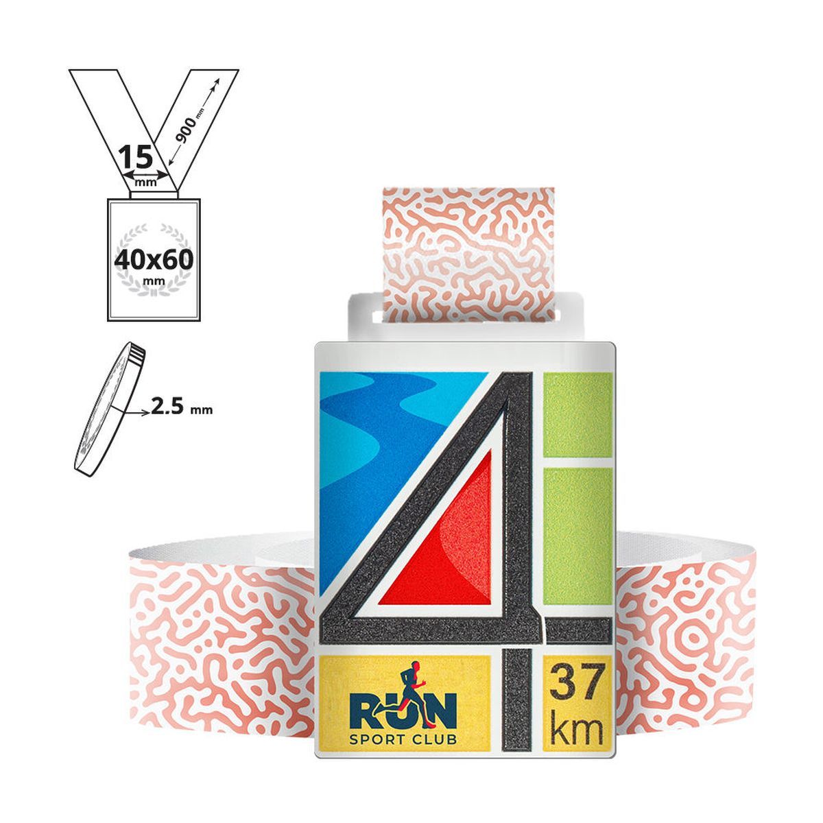Rectangular medal printed in full colour on the front, and including a fully customisable 15x900mm lanyard. Thanks to the special processing - laser cutting and full colour UV printing on the entire surface, we can realise any customisation requested by the customer. The reverse side of the medal is dyed black.