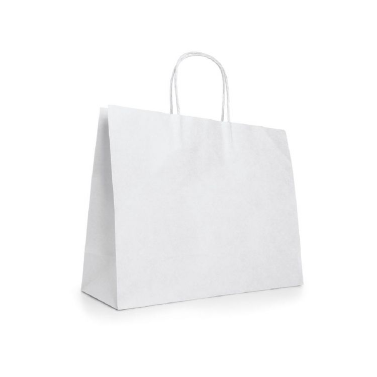 Kraft paper bag (100 g/m²) with twisted handle. Made in Europe. Product in white color