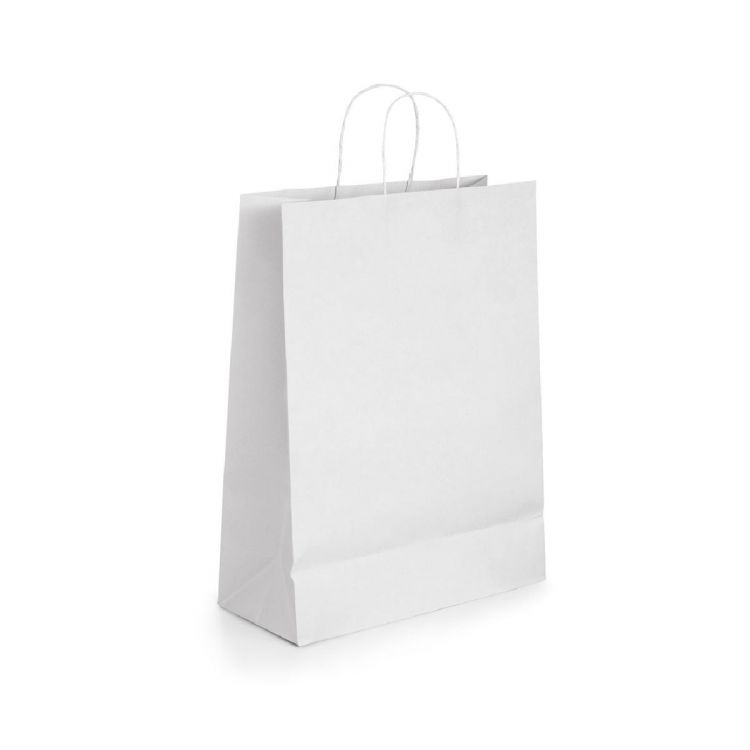 Kraft paper bag (90 g/m²) with twisted handle. Made in Europe. This product is made from FSC™ certified material and other controlled materials. Product in white color