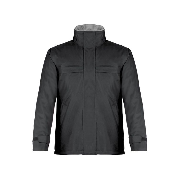 Parka with outside in soft and resistant ripstop breathable pongee with waterproof tear-proof treatment. Design in bright tones and inside with thick lining. Inside collar in warm fleece fleece and double main zipper closure: zipper with handle strap and velcro flap. With front and side pockets with flap and zipper closure, adjustable velcro cuffs and elastic waist with adjustable accessory. Available in sizes S, M, L, XL, XXL. With inside zipper for easy printing.